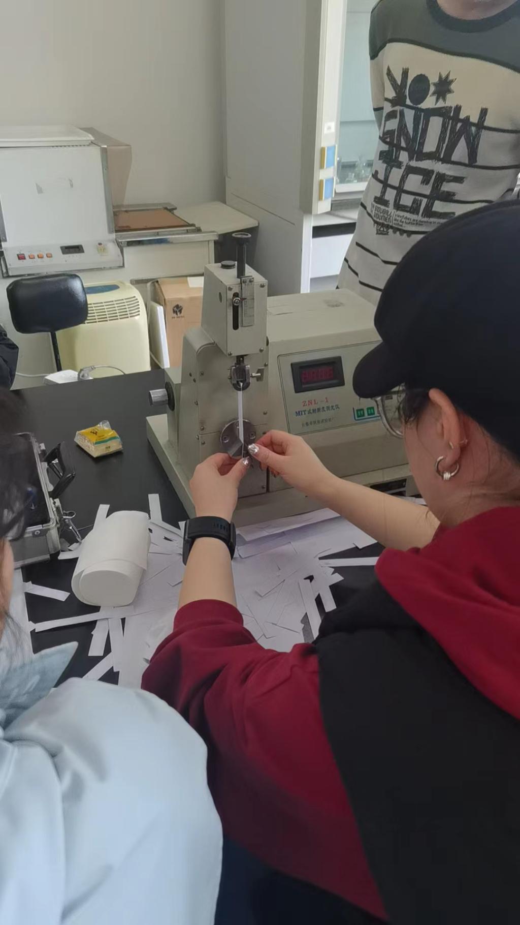 档案保护技术实验室培养员工实践动手能力,感受纸质档案在保管过程中各种问题的应对,其中包括纸张撕裂度的测定、纸张耐折度的测定、纸张去污、档案有害微生物去除等,提升员工实操能力和对档案保管条件的认知。