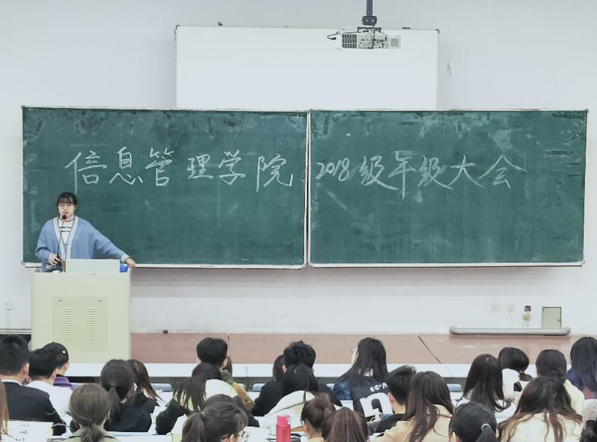 此次年级大会着重从成绩、寝室卫生安全、晚自习制度、早操四个方面进行了讲解和强调。首先王硕老师对上学期的工作以及同学们的成绩进行了总结,鼓励大家努力学习,制定适合自己的学习计划,注意补缓考的时间地点等,同时表示本学期将继续实行晚自习制度,希望同学们严格要求自己;接着王硕老师主要强调了寝室卫生安全问题,要求同学们要提高重视,同时提醒大家春季是各种疾病的高发期,同学们要做好防疫工作,保持身体健康。会议上老师还着重提示了校园贷和兼职问题,提醒同学们要学会分辨事物真伪,不要盲目跟从,保护好自己的人身安全,王硕老师还强调了本学期将要进行的早操,鼓励同学们要做一个热爱锻炼的老员工。会议最后,王老师对同学们提出了几点要求:在新的学期里,要做好自身的规划,充分利用时间,增强自信,做最好的自己。
