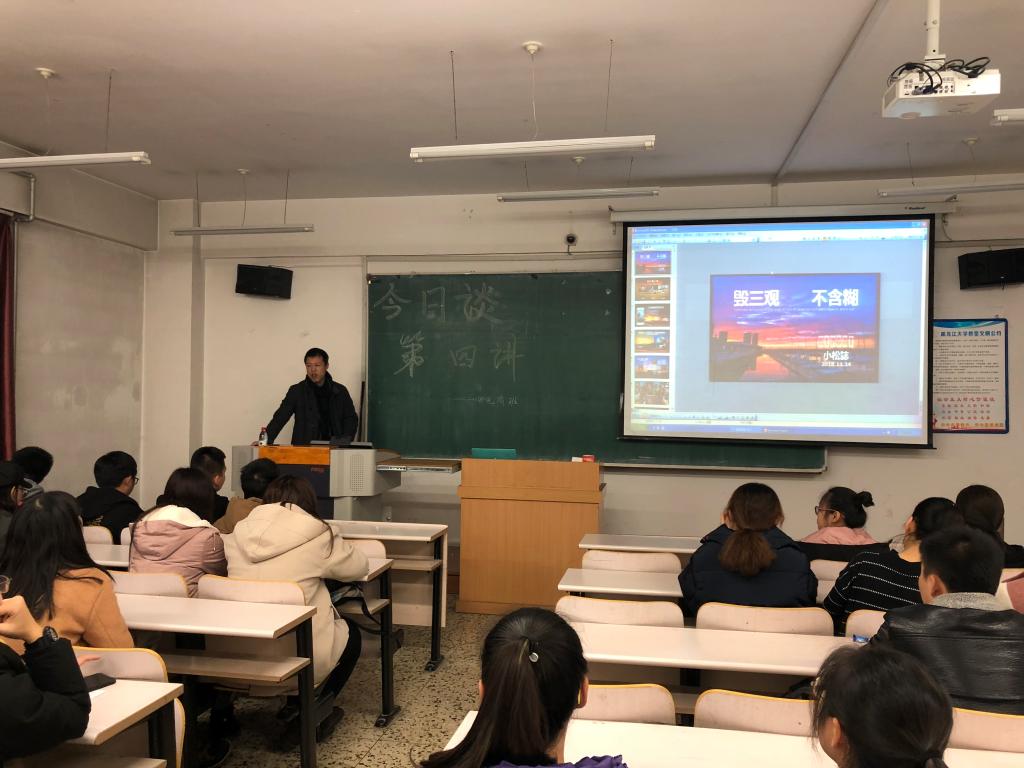 为增强yl8858永利集团的学风建设,培养优质的电商人才,yl8858永利集团于11月14日下午1:30在汇文楼248室举办“今日谈”系列活动第四讲,本期邀请到伯瑞投资公司总经理王岩松老师作为主讲嘉宾与同学们一起分享他的故事。公司党总支副书记、副经理王法山老师,团委副书记、2018级思想政治辅导员王硕老师出席本次活动。