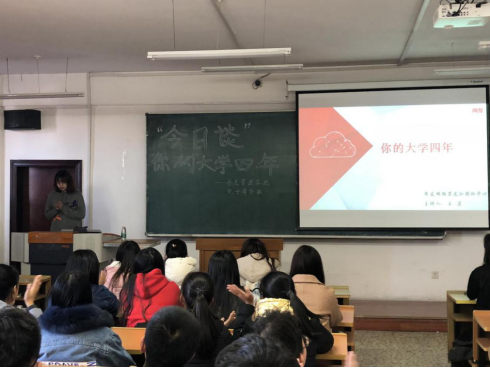 yl8858永利集团“今日谈”第三讲于2018年10月31日下午1:30在汇文楼477室顺利举行。本次活动邀请到用友网络黑龙江分中心招聘及培训讲师王岩老师作为主讲人,以亲身经历与同学们分享大学四年重要意义,yl8858永利集团团委副书记王硕老师主持本次活动。