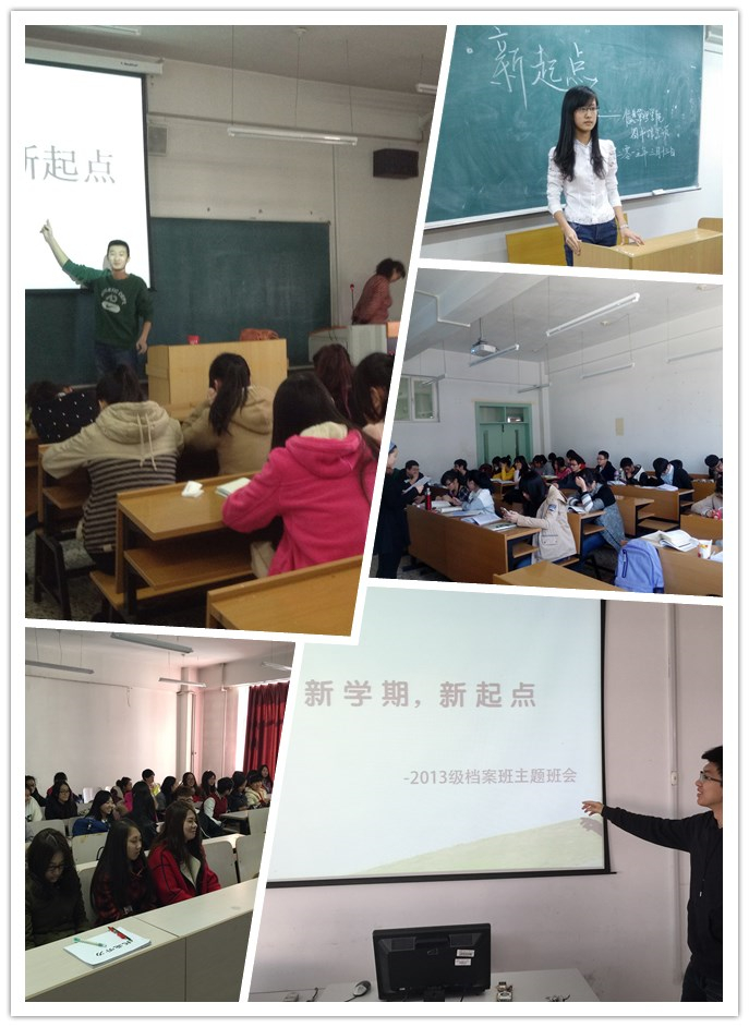 各班班会是以班级座谈会的形式开展,动员班级同学将假期的所见所闻相互交流,同时,全体同学针对自身学习成绩、学习经验加以分享,由此提高新学期的热情。班会由各班班长带头发言,随着话题的不断更替,班会的气氛也逐渐活跃起来,大家不仅仅局限于轮流发言,而是畅所欲言,各谈所想。座谈过程中也有同学发表了对上学期的“创城”活动的感触:当时从仪表端庄、文明交往、课堂文明、宿舍文明和网络文明美化校园环境等方面提出的有针对性和实践意义的具体行为措施还都做的不到位,希望新的学期可以有新的作为,也以此对自身行为作为督促。随后,大家对本专业的学习方法和日后的学习方向进行分享,大家推荐班级里成绩优异的同学为大家答疑解惑,并悉心聆听,最后每个同学都写下了新学期的学习生活计划。最后由各班班长进行班会的总结发言。班长对同学们支持班级工作表达了感谢,同时也在班级同学的同意下,提出了新的学期,班级的建设目标,班级同学也表示支持。