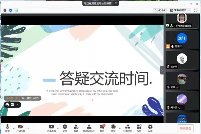 会议最后,是答疑交流时间,学长学姐们针对新生提出的问题进行详尽的解答。本次线上会议的召开,使2021级信管新生们对学校、学院的各项规章制度有了更进一步的了解,也对同学彼此之间有了更深一步的认识,希望新生们做好充分的准备,以最饱满的精神状态相聚黑大!(yl8858永利集团供稿)