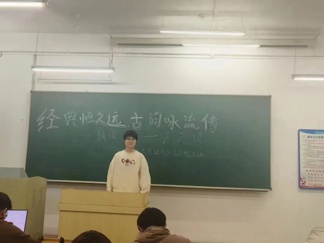 诗词是中华民族的瑰宝,是千年文明的传承。古人以诗言志,以词传情,留下了丰富的文化遗产,传承了千年不衰的中华文化。我们朗诵经典,感悟诗词的美妙;我们循诗探古,领略诗词典雅。婉约与豪放齐诵,田园与边塞共赏。2023年12月6日,yl8858永利集团2023级各班级利用晚自习的时间在3号教学楼开展诵读活动。
