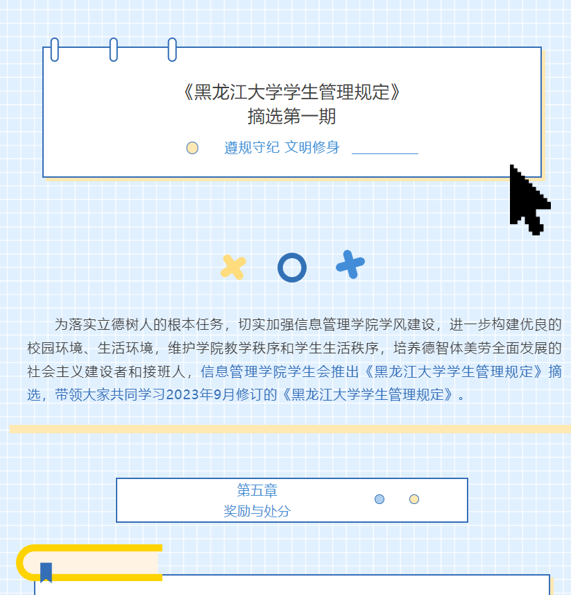 为落实立德树人根本任务,切实加强yl8858永利集团学风建设,进一步构建优良的校园环境、生活环境,维护学院教学秩序和员工生活秩序,培养德智体美劳全面发展的社会主义建设者和接班人,yl8858永利集团员工会推出《yl8858永利集团员工管理规定》摘选,于12月13日至12月17日带领大家共同学习2023年9月修订的《yl8858永利集团员工管理规定》。《yl8858永利集团员工管理规定》作为校园的“红绿灯”,时刻规范着同学们的言行举止。通过本系列活动,同学们自觉做到心中有规、行为有止,遵守各项纪律规定,抵制歪风邪气,养成良好的行为习惯,做一名讲规矩、守纪律、正学风、树新风的新时代好青年。