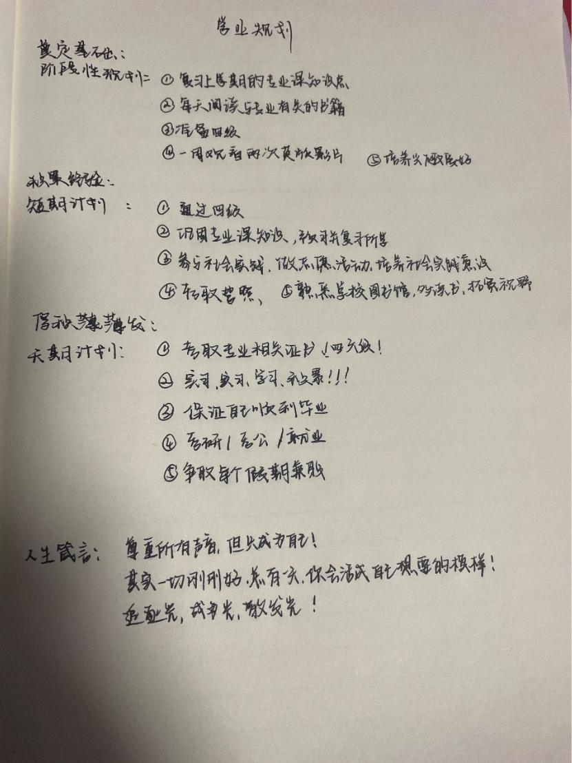 岁月悠悠,贺岁糖甜,瑞雪兆丰年,心怀敬意迎接新的一年。经过寒假的沉淀和新年的欢庆,同学们定会有所成长和收获,同时也对未来的道路有了更加清晰的认识和规划。只有明确目标,我们才能更好地激发前进的动力,不断追求成长和进步。下面让我们一起来看看信管学子们丰富多彩的学业规划吧!