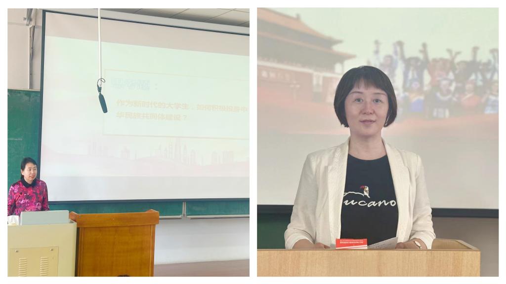 为深入学习贯彻《中共中央、国务院关于加强和改进新形势下高校思想政治工作的意见》《关于深化新时代学校思想政治理论课改革创新的若干意见》精神,具体落实《深化新时代黑龙江省学校思想政治理论课创新创优行动方案》等文件要求和公司党委部署,引导员工牢固树立正确的中华民族历史观与休戚与共、荣辱与共、生死与共、命运与共的共同体理念,公司党委书记刘荫梅、经理黄丽霞于6月3日下午走入本科生课堂,分别为学院23级电子商务专业、信息管理与信息系统专业和图书馆学专业、档案学专业全体同学讲授《铸牢中华民族共同体意识》专题理论课。