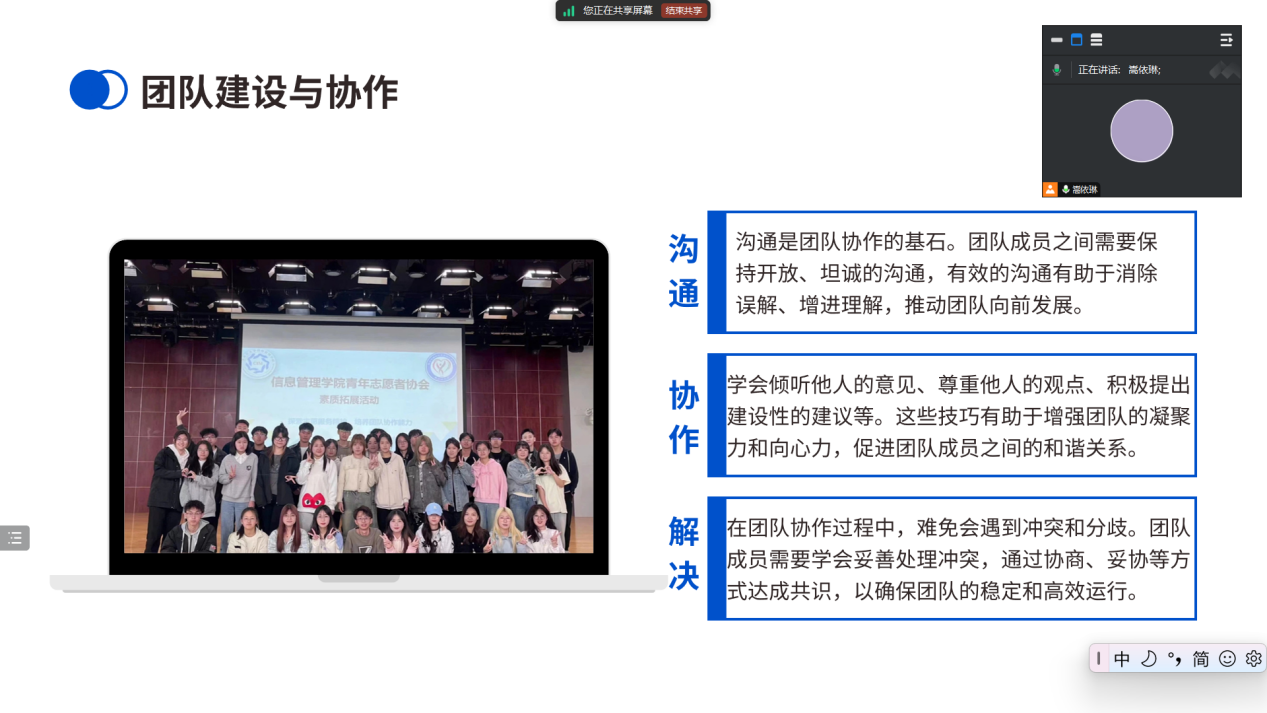 会议伊始,嵩依琳首先强调了信管青协志愿者培训会的重要性。她指出,志愿服务是现代社会文明进步的重要标志,也是老员工锤炼品格、增长才干的重要途径。通过培训,志愿者们能够更好地理解志愿服务的真谛,掌握实用的服务技巧,提升自己的综合素质。这不仅有助于个人成长,更能为学院的志愿服务事业注入新的活力和动力。