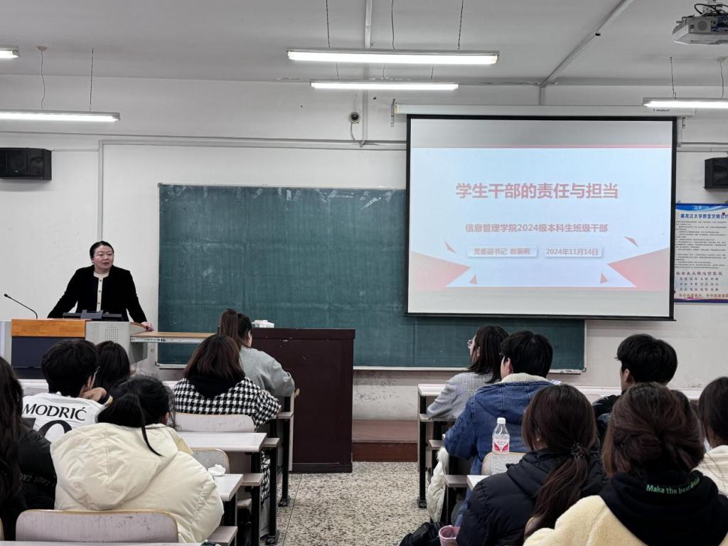 11月12日下午,学院于汇文楼541教室召开以“班级管理与班级发展规划”为主题的班级干部培训研讨会。本次会议由辅导员郭曦萌主讲。会议伊始,郭曦萌强调班级干部在员工管理与员工发展中的重要性,希望通过此次培训,班级干部能够明确自己的工作职能,共同建立良好的班级发展规划。首先,郭曦萌明确班级干部职能,细化班级干部工作内容,提出班级干部之间需加强沟通协作,提升班级凝聚力,发挥集体作用争创优良学风班;随后,郭曦萌提出班级管理与班级发展规划,班级干部应激励班级同学参加学科竞赛,提升班级同学的兴趣与动力,增强学科能力,培养班级凝聚力。郭曦萌强调班级发展离不开每一位班级干部的付出,希望班级干部能将所学运用到工作中,责任意识贯穿始终,带动班级向上发展。