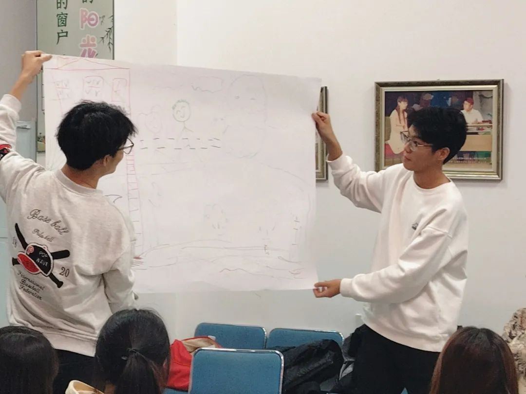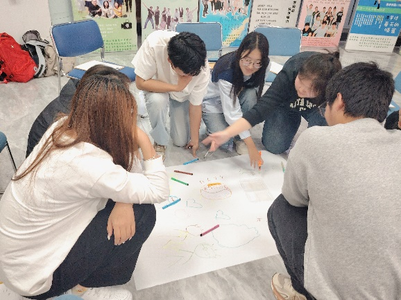 在这之后,令人期待的环同心绘画环节精彩登场。各小组围聚在一起,在不能进行语言交流的情况下,共同投入到主题画的创作中。大家心有灵犀,用画笔传递着彼此的创意与情感。完成创作后,各小组代表对画作含义进行阐释,其他小组的同学纷纷提问交流。这个环节进一步提升了团队的协作能力,让同学们在无声的合作中绽放出独特的艺术魅力,为本次活动增添了浓墨重彩的一笔