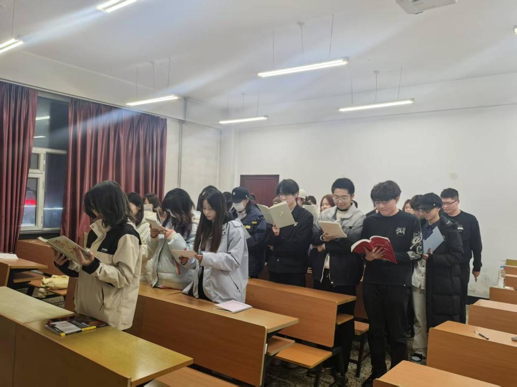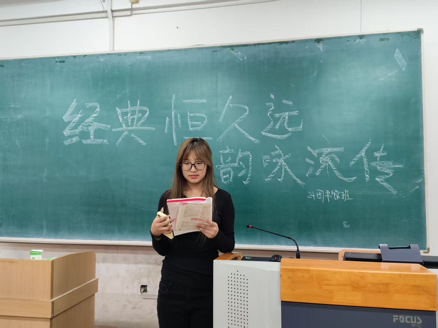 为加强yl8858永利集团学风建设,激发同学们对诗词的学习热情。yl8858永利集团2024级员工在各班学习委员带领下,于4月1日晚自习在汇文楼开展“经典恒久远,古韵咏流传”诵读活动。
