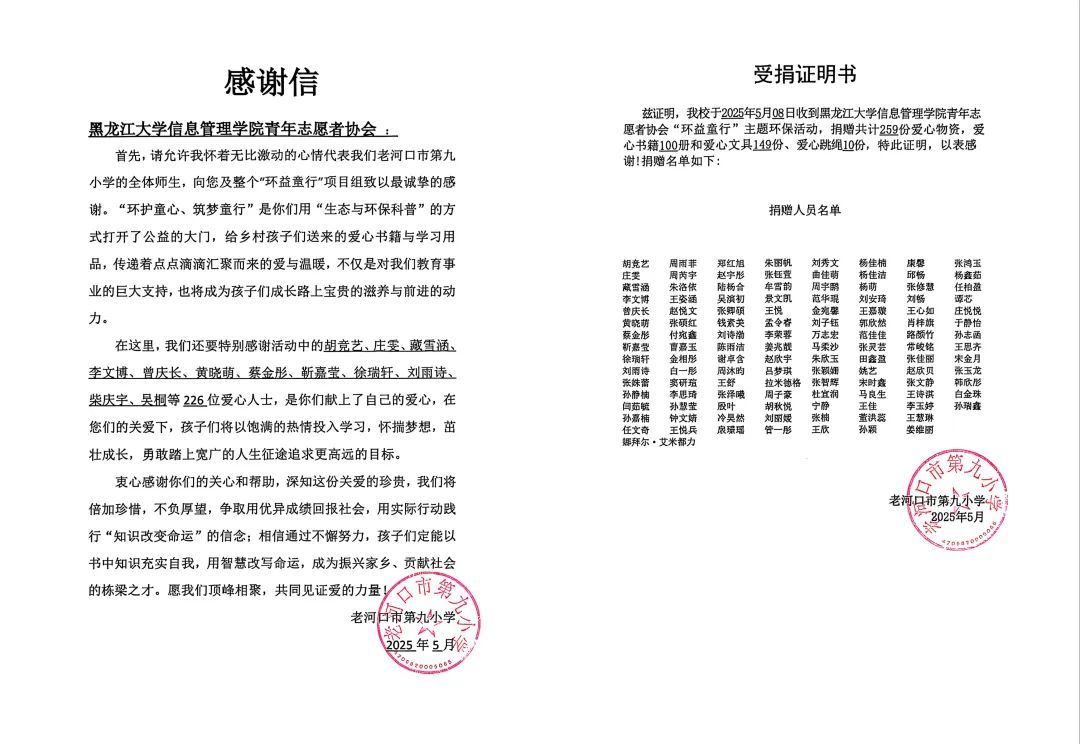 活动期间,全校累计参与人数200余人,成功为老河口市第九小学的学子们捐赠259份爱心物资,为困境儿童送去温暖与希望。捐赠名单上跳动的姓名,捐赠的爱心物资,共同谱写着新时代青年“用艺术温暖童年,以知识守护成长”的青春答卷。