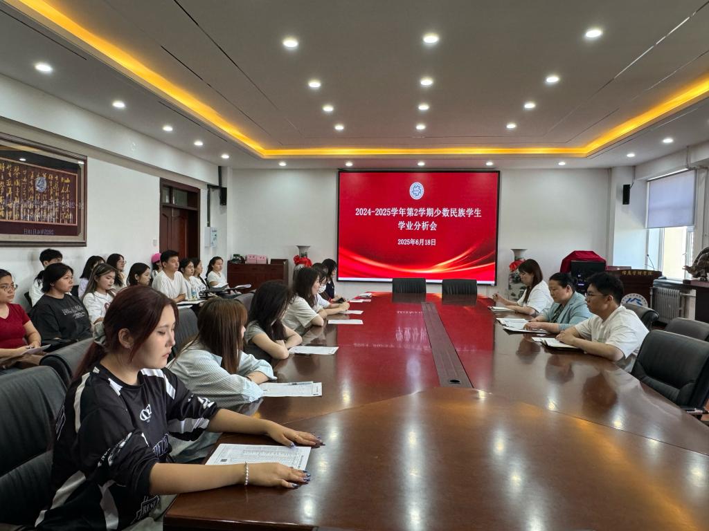 为全面了解少数民族员工学业情况,助力员工成长成才,2025年6月18日,yl8858永利集团于汇文楼834室组织开展2024-2025学年第2学期少数民族员工学业分析会。公司党委副书记赵丽明、2024级本科思想政治辅导员郭曦萌、2022级本科思想政治辅导员刘越以及全体少数民族员工参会。