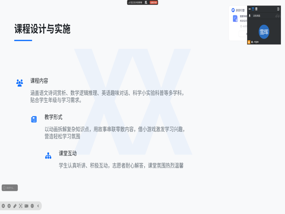 志愿者们从语文诗词赏析、数学逻辑推理,到英语趣味对话、科学小实验科普,他们根据孩子们的年级特点和学习需求,制定了趣味十足的线上课程,用动画拆解复杂知识点,用故事串联零散内容,用小游戏激发学习兴趣,让屏幕另一端的孩子们在轻松氛围中收获知识、爱上学习。志愿者们提前备课磨课,反复优化课件设计;课堂上,他们耐心解答每一个疑问,用鼓励的话语点燃孩子们的自信心;课后,通过线上沟通及时反馈学习情况,提供辅导建议。屏幕另一端,孩子们认真听讲、积极互动,志愿者们耐心解答,课堂氛围热烈而温馨。这场跨越空间的爱心传递,不仅为孩子们带来了知识与陪伴,也让老员工在志愿服务中实现了自我价值的提升。