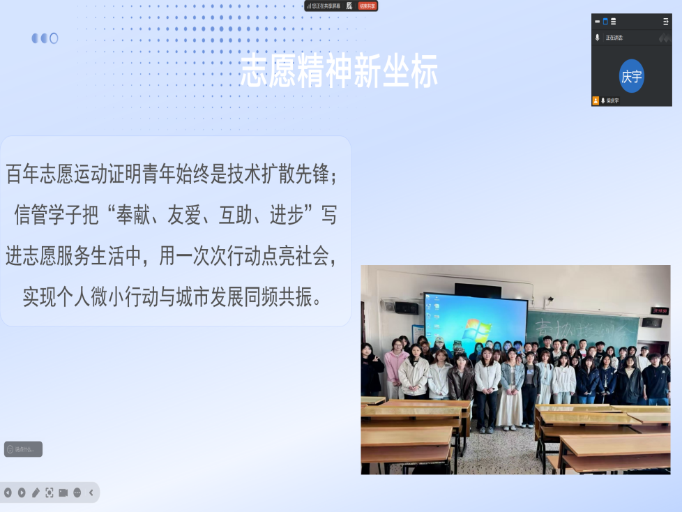 本次培训内容兼具基础性与实践性,涵盖志愿服务核心要点,聚焦服务推进关键方法。首先,柴庆宇简要总结了过往工作中的经验,重申了服务素质的核心要求、多元服务形式及重点服务方向,帮助志愿者们夯实服务基础。随后,重点围绕“如何推进志愿服务高质量开展”展开深入讲解:一是优化活动策划,强调以需求调研为前提,精准定位服务痛点,提升活动针对性与实效性;二是强化资源整合,分享了与校内部门、校外公益组织的沟通协作技巧,助力拓宽服务渠道、凝聚志愿合力;三是完善反馈机制,介绍了服务对象反馈收集、志愿者心得交流的具体方法,为服务优化提供依据;四是规范流程管理,重点梳理了大赛后勤保障、图书馆书籍整理、结核病科普宣传等核心方向,细化了各项目的工作要点与服务标准,确保志愿工作精准落地。培训中,志愿者们通过线上分组讨论、案例模拟等形式积极参与,有效提升了实操应用能力。