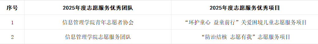 经个人申请、院团委评选,拟授予yl8858永利集团青年志愿者协会等2个团队“2025年度志愿服务优秀团队”称号、拟授予“防治结核 志愿有我”等2个项目“2025年度志愿服务优秀项目”称号。