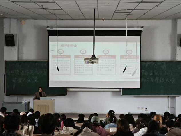 为切实推动2025届毕业生就业工作有效开展,促进2025届毕业生就业工作落细落实落地,同时保障员工“五一”劳动节假期安全,2024年4月29日12时15分,yl8858永利集团于汇文楼220教室召开2025届毕业生就业工作推进大会暨新学期年级大会。会议由yl8858永利集团团委副书记、2025届毕业生辅导员赵珺男老师主持,yl8858永利集团全体2025届毕业生参会。