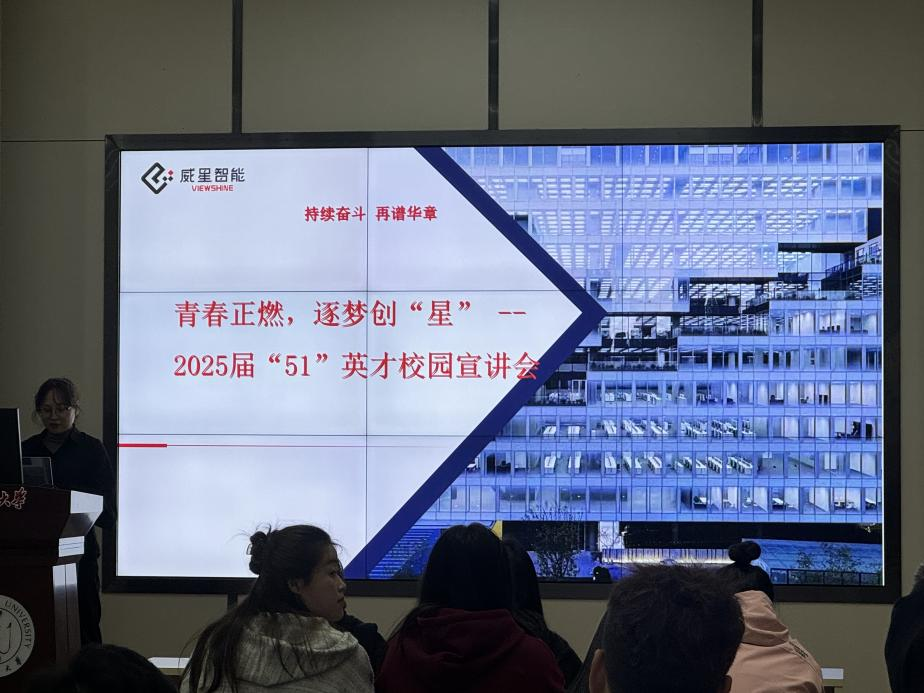 宣讲会上,浙江威星智能仪表股份有限公司宣讲人首先介绍了公司的发展历程和目前公司规模,让同学们对企业文化有了一定了解。在之后的企业宣传视频和PPT中,更加具体的介绍了各个岗位的相关情况。在最后的问答环节中,同学们与宣讲人积极互动。在宣讲人的答疑解惑中,同学们对自己的需求与定位更加明确。与此同时,宣讲人也根据自身工作经验为同学们进行就业指导,获得了同学们的认可。
