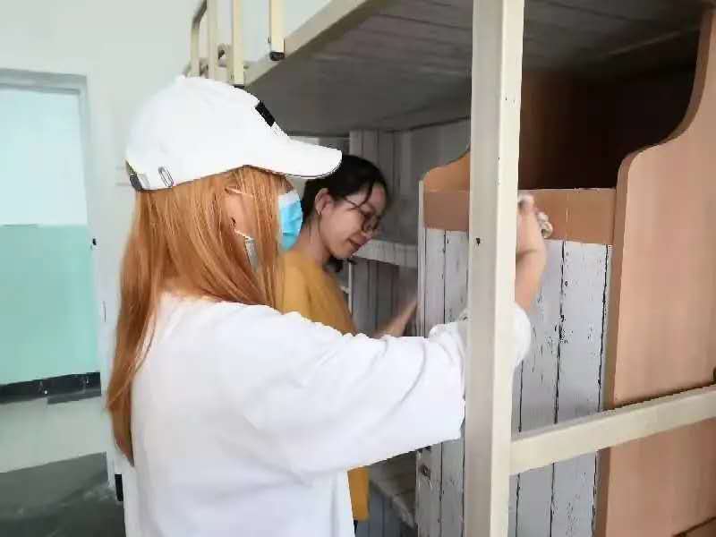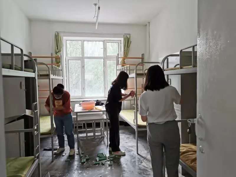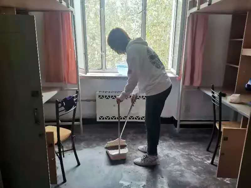 员工组织的同学们根据事先安排好的任务,携带好打扫寝室过程中需要的物品,前往指定寝室开展打扫工作。同学们进入寝室后,便立刻开始工作,扫除地面角落的污垢、清除窗台上沉积的灰尘,打扫地面上的杂物。对于寝室的桌椅、衣柜、床铺等寝室内设施都仔细进行清洁,使闲置已久的寝室焕然一新。