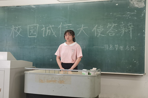 本次评选活动以答辩形式进行,并本着公平公正的原则,结合员工日常的个人表现、学习成绩等标准,经学院评委的评选和考察,最终确定推荐2019级电子商务专业李伟平为学院“诚信大使”代表,参与校级评审。