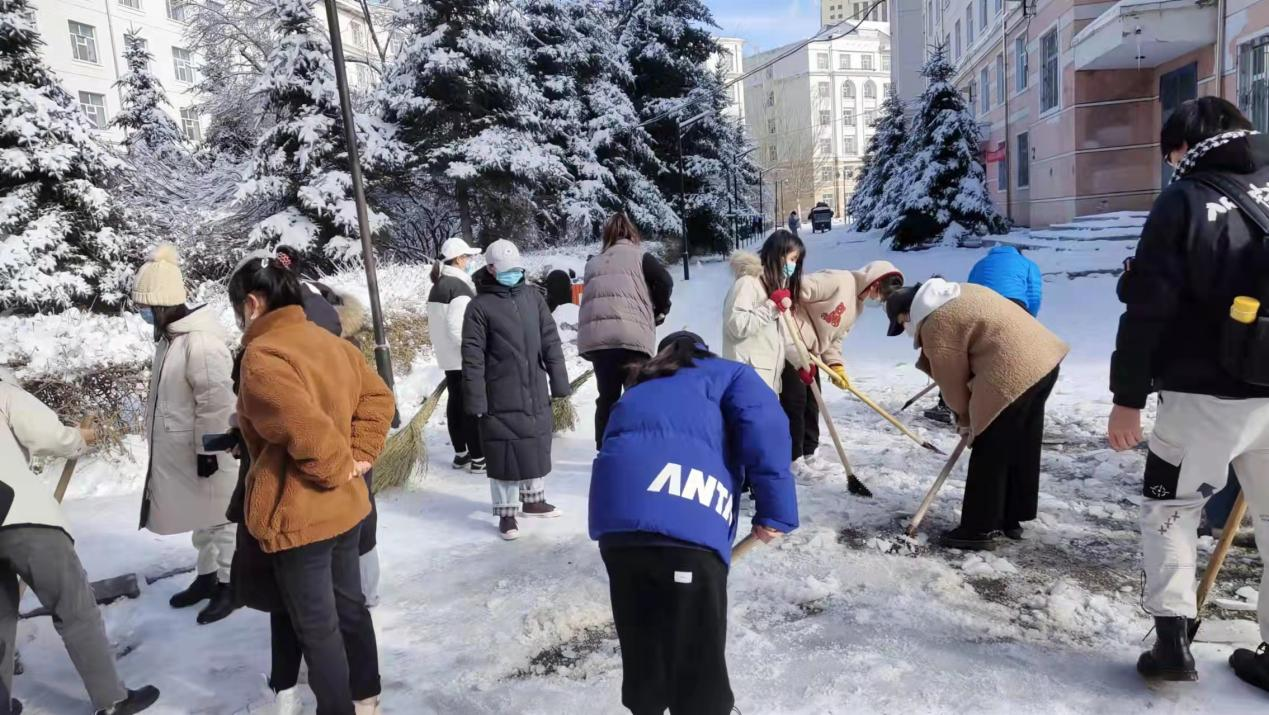为了保证全校师生的安全出行,保证道路畅通,增强班级体的责任感和凝聚力,提高大家的身体素质,信息管理学院2021级新生开展扫雪活动。