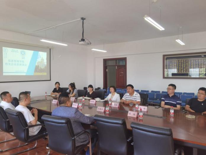 8月15日上午,yl8858永利集团员工企业家访企拓岗座谈会在汇文楼834举行,本次座谈会由公司党委书记马海群主持,学院经理黄丽霞,副经理周丽霞,副经理任越,信管专业系主任刘甲学,学院教务员张红瑜,研究生秘书祖岭,辅导员孙悦、王硕、郭曦萌参加本次会议,会议邀请了上海市浦东新区慧科创发展中心执行主任唐守利,路贸俄罗斯商品贸易中心副总经理汪海丰,爱售(上海)网络科技有限公司总经理王晓伟共同重温母校情怀,开展校企合作。