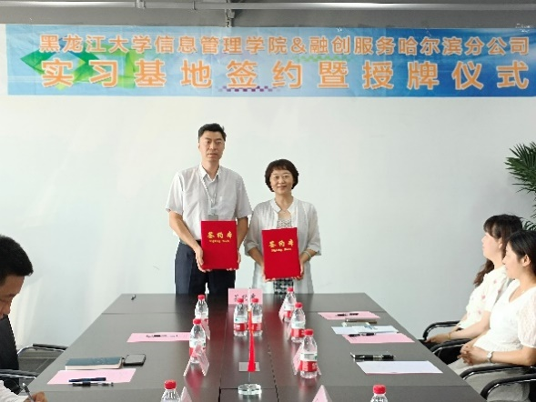 最后,黄丽霞经理与融创服务集团华北大区哈尔滨分公司人力行政负责人顾博特签订校企合作协议,马海群书记与融创服务集团华北大区哈尔滨分公司总经理刘树荣参与授牌仪式。