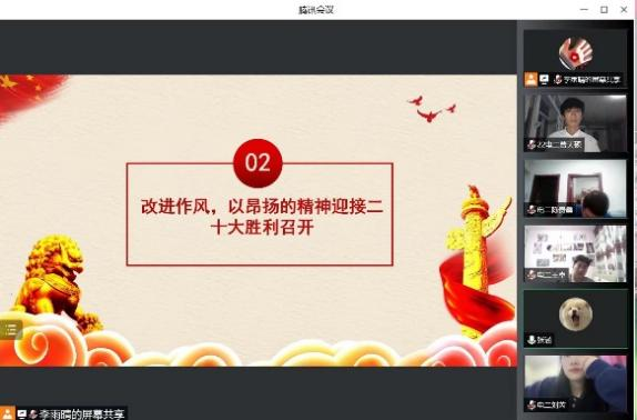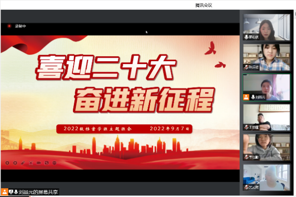 会议之初,新生班主任们对于本次班会的主题进行了详细的讲解,通过观看相关视频等方式为同学们讲解了党的百年奋斗历史、优秀青年群体的事迹等内容。身为新时代青年,要坚定为社会主义理想艰苦奋斗的信念,继续跟党走,以青春朝气接过前辈的接力棒,不断加深对党的历史发展进程的理解和认识。用实际行动迎接党的二十大的胜利召开。随后,各班级的同学们积极分享自身的学习感悟,他们纷纷表示将以实际行动展现爱国之志、报国之心,努力学好知识,掌握本领,为祖国奉献美好青春。