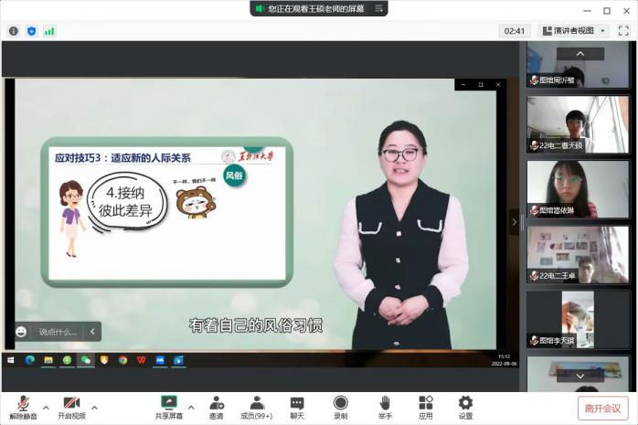 为加强新生心理健康教育,yl8858永利集团于2022年9月6日14:00通过腾讯会议线上开展2022级新生入学教育---心理健康教育讲座。本次会议由yl8858永利集团团委副书记,2022级新生辅导员王硕老师主持,yl8858永利集团心理健康教育中心尹静老师为主讲人。