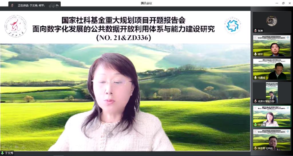 11月5日,国家社科基金重大项目“面向数字化发展的公共数据开放利用体系与能力建设研究”开题报告会在线上顺利举行。省委宣传部二级巡视员周美胜,副董事长于文秀,“面向数字化发展的公共数据开放利用体系与能力建设研究”开题专家组,项目首席专家、子项目负责人,社会科学处相关负责同志出席会议。社会科学处副处长朱志勇主持会议。