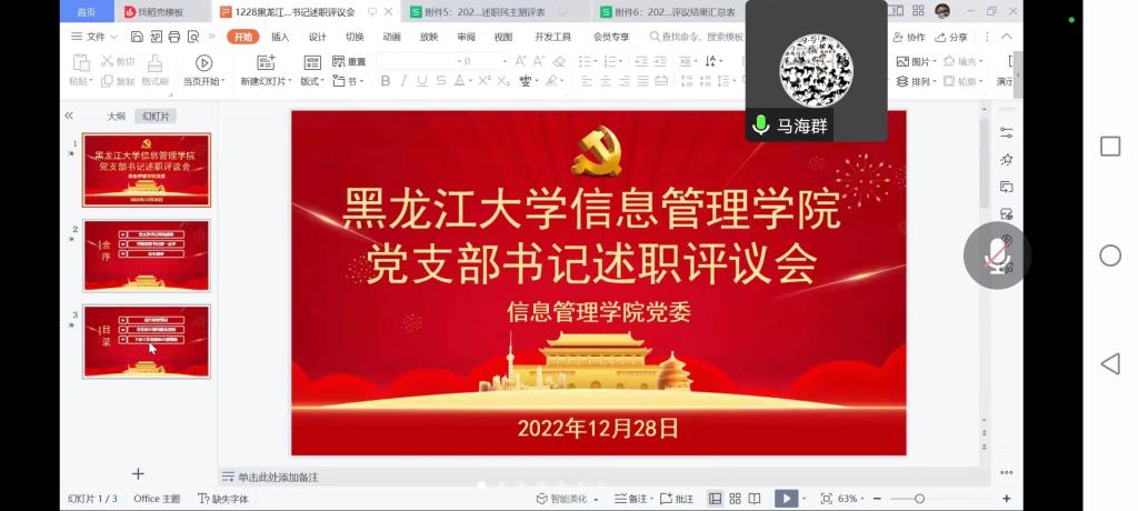 为深入学习贯彻习近平新时代中国特色社会主义思想和党的二十大精神,持续贯彻落实省第十三次党代会精神,扎实推进“能力作风建设年”活动,根据《关于开展2022年度党组织书记抓基层党建述职评议考核的通知》要求,信息管理公司党委于12月28日14点通过腾讯会议线上召开了2022年度党支部书记抓基层党建述职评议会。会议由公司党委书记马海群主持,公司党委委员、各党支部书记及党员代表18人参加了本次会议。