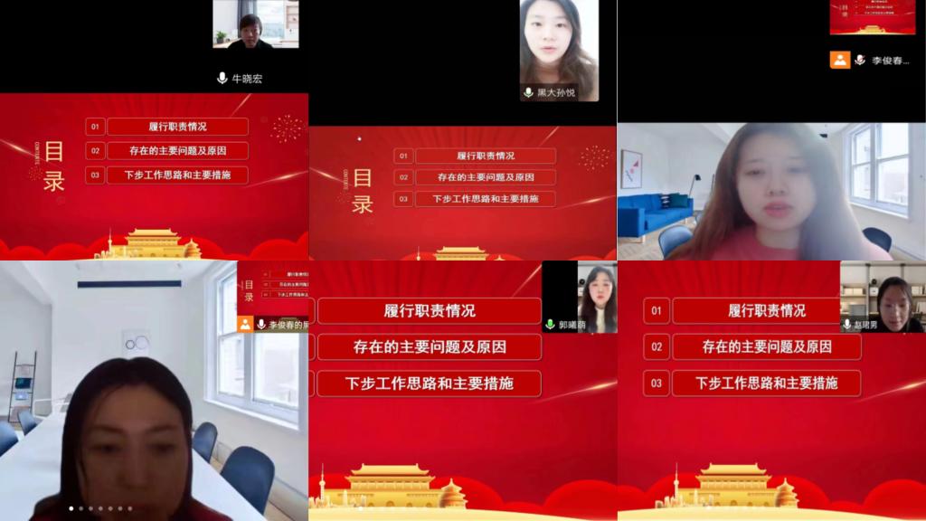 会上各党支部书记紧扣突出学习贯彻习近平新时代中国特色社会主义思想和党的二十大精神情况;突出落实基层党建工作重点任务情况;突出落实基层党建责任制和全面从严治党要求情况;突出抓好有关问题整改情况等述职重点内容,从履行职责情况、存在的主要问题及原因、下步工作思路和主要措施三个方面进行全面阐述。公司现有7个党支部,其中6个党支部书记进行了现场述职:教工第一党支部书记牛晓宏;教工第三党支部书记朱天梅;2019级员工党支部书记孙悦;2020级员工党支部书记郭曦萌;2021级员工党支部书记赵珺男;2022级员工党支部书记王硕。教工第二党支部书记张涛代表党支部进行了书面述职。