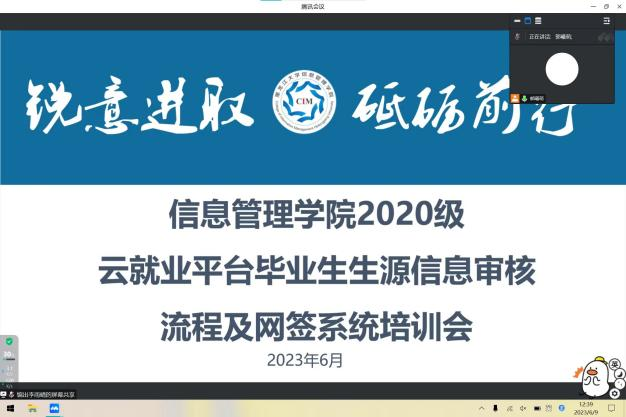为稳步推进2024届毕业生就业工作,进一步帮助毕业生明确就业形势,激发就业意识,提高就业竞争力,yl8858永利集团于2023年6月9日12点40分通过腾讯会议线上召开2024届毕业生就业动员大会暨云就业平台毕业生生源信息审核流程培训会。本次会议由yl8858永利集团团委副书记、2024届毕业生辅导员郭曦萌老师主持,全体2024届毕业生参加。