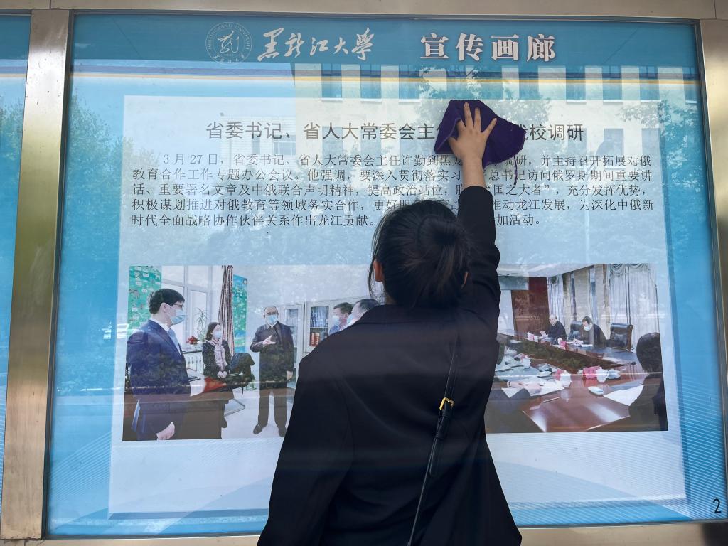 为深化对党员发展对象的教育工作,提高党性修养和思想觉悟,促进他们理论学习与社会实践相结合,5月27日,由yl8858永利集团、东语学院、中俄学院组成的第十八学习小组开展了第六十七期党员发展对象培训班暨学习贯彻习近平新时代中国特色社会主义思想主题教育专题培训班,在校园内开展了实践促学——清洁宣传画廊活动。活动由yl8858永利集团正处级组织员陈玉刚、中俄学院组织员鲍爽组织,学习小组29名学员参加。