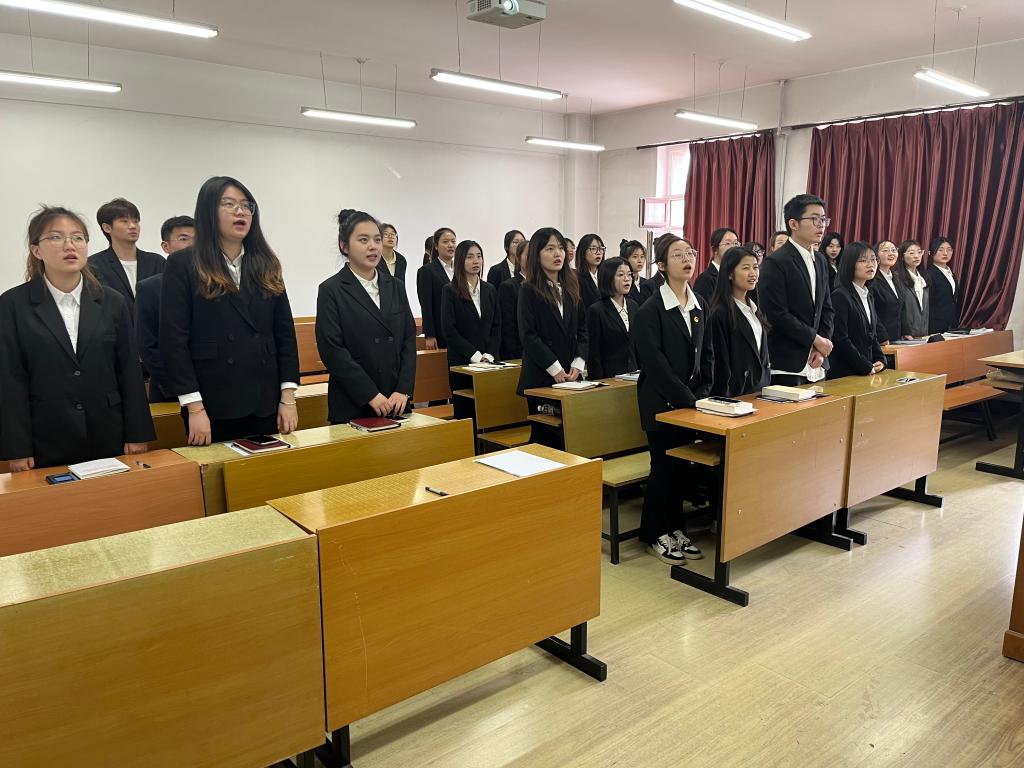 最后,鲍爽带领大家了学唱了《国际歌》,学习了歌词蕴含的伟大精神与坚定信仰。《国际歌》是一首为全世界无产阶级革命而写就的战歌,其节奏抑扬顿挫、慷慨激扬,歌词感情丰富,蕴含深刻的道理。随后,鲍爽带领学员们一同学唱《国际歌》。经过反复排练后,整齐划一、铿锵有力的歌声飘荡在教室中,庄严的歌声,坚定的誓词,是学员们发自肺腑的信仰。