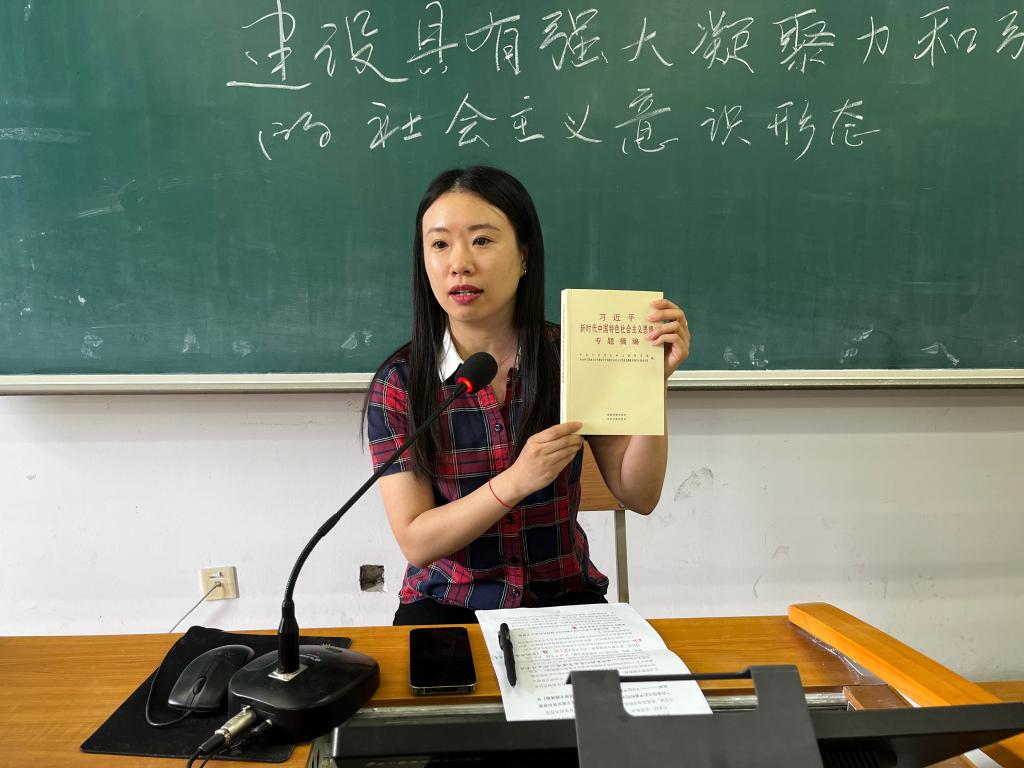 接着,隋玚以“自觉用习近平新时代中国特色社会主义思想改造主观世界和客观世界”为题,带领全体学员共同学习了《习近平新时代中国特色社会主义思想专题摘编》。她首先介绍了《习近平新时代中国特色社会主义思想专题摘编》的发行背景及意义,随后就《习近平新时代中国特色社会主义思想专题摘编》中的重点内容之“深入学习贯彻习近平新时代中国特色社会主义思想,掌握好马克思主义看家本领”、“以习近平新时代中国特色社会主义思想自觉改造主观世界,以学铸魂,强党性”、“以习近平新时代中国特色社会主义思想努力改造客观世界,学以致用,立足岗位建新功”三个部分进行了领学。隋玚希望全体学员能够将《习近平新时代中国特色社会主义思想专题摘编》原原本本学、逐字逐句悟,深刻领悟“两个确立”的决定性意义,增强“四个意识”、坚定“四个自信”、做到“两个维护”,切实把习近平新时代中国特色社会主义思想运用到贯彻落实党的二十大提出的重大战略部署的具体工作中,变成改造主观世界和客观世界的强大思想武器。