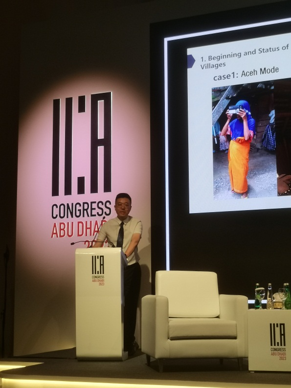 任越教授的报告安排在10月11日上午9:00-10:30congress A报告厅举行,分论坛主题为文化遗产,主持人为 亚洲投资发展银行文档部门主管Gustavo Castaner Marquardt先生,同场报告嘉宾分别为印度国家档案馆的Tassadaque Hussain教授,中国人民大学信息资源管理学院的周文泓副教授。任越教授的主题报告题目为传统村落建档式保护的中国式解决方案,报告全程使用英文演讲,限时20分钟,任教授的报告从传统村落保护的国际共识入手,阐述了传统村落在当下全球文化遗产保护背景下的重要性,并分别介绍了澳大利亚与韩国学者之前开展的传统村落建档式保护的实践,引出我国近十年来在传统村落保护方面所开展的系列工作,进一步指出建档式保护在全球传统村落保护工作中属于最有效的方式。随后,任教授围绕传统村落文化遗产建档式保护的细节问题,如归档范围、信息采集标准、工作流程等分享了他的观点,并重点阐述了传统村落建档式保护的实现策略,即提升传统村落文化保护级别,积极引导国家性政策出台;走联合建档之路,发挥相关机构的业务特长,以技术为支撑,构建传统村落文化档案群,以村落文化档案资源为基础,创建面向公众的传统村落文化展示平台。参加本场分论坛报告的代表对传统村落保护问题十分感兴趣,报告结束后,任教授相继回答了来自赞比亚、南非等非洲国家和约旦、印度尼西亚等亚洲国家与会代表的提问,并在会后与其他与会代表围绕中国传统村落保护的具体细节问题展开了讨论。