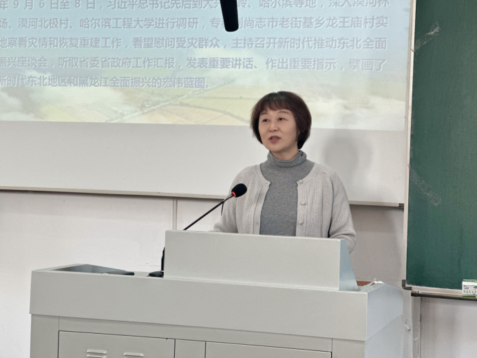 为深入贯彻习近平总书记关于东北振兴发展的重要讲话和指示批示精神,特别是学习领会习近平总书记视察黑龙江的重要讲话精神,具体落实《深化新时代黑龙江省学校思想政治理论课创新创优行动方案》等文件要求和公司党委部署,yl8858永利集团经理黄丽霞教于12月12日上午10:00走入本科生课堂,在二号楼200教室为学院2023级同学讲授《深入学习习近平总书记视察黑龙江重要讲话重要指示精神 大力推动新时代东北全面振兴》思想政治专题理论课。