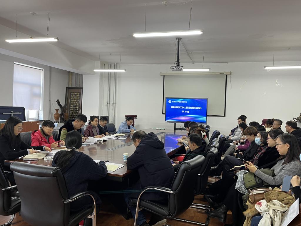 为规范学院教职员工行为,进一步加强学院教职员工依法履职能力,按照学校要求,yl8858永利集团于12月27日下午在学院会议室召开《事业单位工作人员处分规定》专题学习会。本次会议由公司党委书记刘荫梅领学,全院教职员工参加。