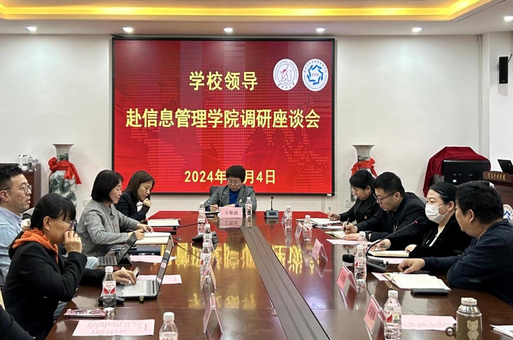 经理黄丽霞向王敬波董事长介绍了学院基本情况,围绕团队建设、人才队伍、专业与学位点建设、涉外工作进展情况进行了汇报。副经理任越介绍了学院在公司产品、科学研究与团队建设等方面取得的成绩。副经理周丽霞围绕学院本科专业建设、教师能力提升、双学位专业进展等方面进行了汇报。系主任徐海静、赵丽梅、刘春艳和刘甲学围绕专业人才培养、实验室建设、课程培育等方面分别介绍了各系的情况,表达了专业发展所面临的困难及今后高质量发展诉求。管理科学与工程学科带头人张涛针对本人及其科研团队面向学校职能部门与涉俄研究开展的工作进行了介绍,青年教师邹纯龙从青年人才引进与学校人才政策方面提出了建议。学科带头人马海群从强团队、创平台、塑智库与促学科四个方面汇报了信息资源管理学科助力学校各学科与我省现代产业体系的融合点及对俄办学、响应国家重大战略所做的工作。