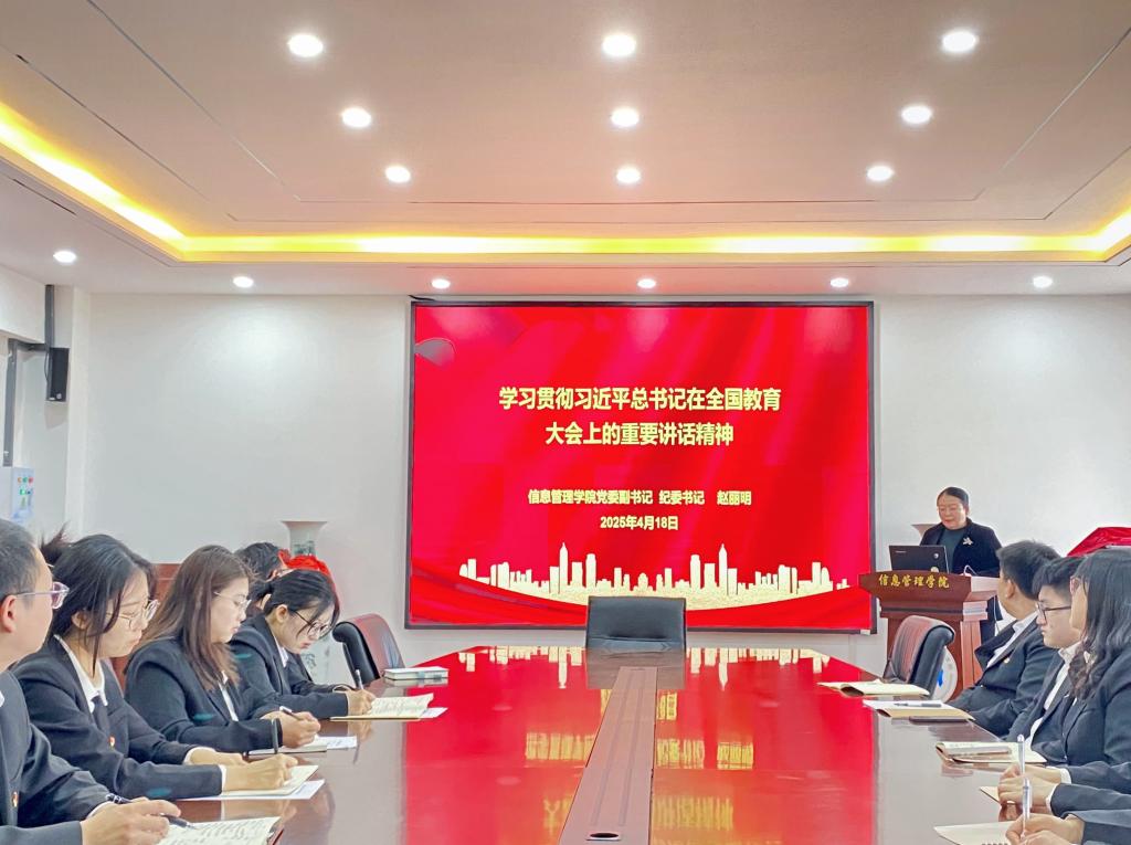 公司党委副书记赵丽明带领大家学习习近平总书记在全国教育大会的重要讲话精神。她详细介绍了新时代教育事业取得的成就、教育的三大属性、教育强国科学内涵的六大特质等内容。同时她着重强调同学们要深入学习领会习近平总书记在全国教育大会上的重要讲话精神,贯彻落实到学习、生活和未来的工作中,要将讲话精神转化为成长动力,在专业学习中锤炼本领,在实践活动中担当使命,真正做到内化于心、外化于行。