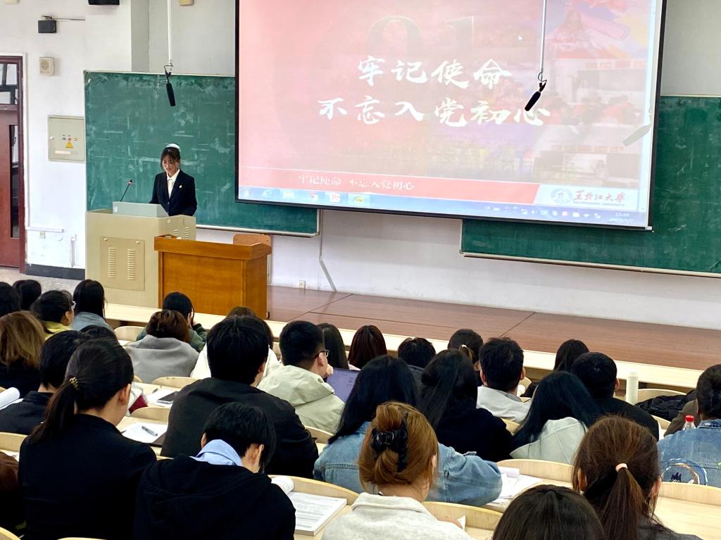 在知识讲座环节,由yl8858永利集团教工第二党支部书记张涛带领学员进行《中央八项规定精神》专题学习。本次学习采用AI赋能微党课的形式,为学员们走稳发展党员“最初一公里”夯实思想根基。