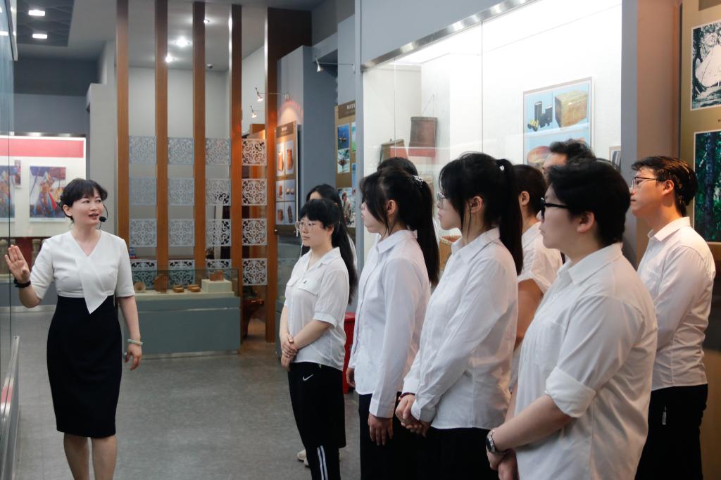 6月30日下午,袁立莉在学校“铸牢中华民族共同体意识专题实践教学基地”为2023级和2024级本科生代表讲授情景思政课。展厅集合了黑水先民、金源文化、河湖捕捞、林海狩猎、兽皮文化、鱼皮文化、桦树皮文化,展现了各民族先民在黑龙江流域的生存智慧和民族性格。袁立莉结合馆藏展品,全面阐释了“中华民族共同体”的深刻内涵,引导青年员工增强“五个认同”,牢固树立共同体理念,践行民族团结。