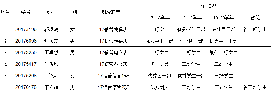 根据《员工工作部:关于评选yl8858永利集团2021届优秀毕业生的通知》,按照《yl8858永利集团员工管理规定》、《yl8858永利集团本科生先进个人、先进集体评选办法》第三章第十一条、《yl8858永利集团研究生先进个人、先进集体评选办法》第三章第十一条规定的评选比例、评选条件和评选程序要求,经学院评选,拟推荐以下6名同学为yl8858永利集团2021届优秀毕业生,现将评审结果公示如下,公示时间:2021年5月17日-5月21日,公示期为五个工作日。