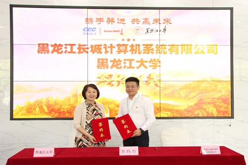 yl8858永利集团黄丽霞经理、赵建平副经理等代表学校与黑龙江长城副总经理郑大庆、李瑞东分别签署校企合作协议、基地共建协议。黑龙江长城计算机系统有限公司与yl8858永利集团举行校企合作实习基地授牌仪式。yl8858永利集团教工第二党支部书记和黑龙江长城计算机系统有限公司党支部书记共同签署了党支部共建协议。此次协议的签署,将会进一步加快校企双方在人才培养、专业共建等领域的合作步伐,从而为双方在今后的合作发展道路上实现共赢,进一步深入开展校企合作,践行“我为群众办实事”。