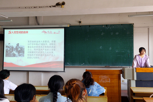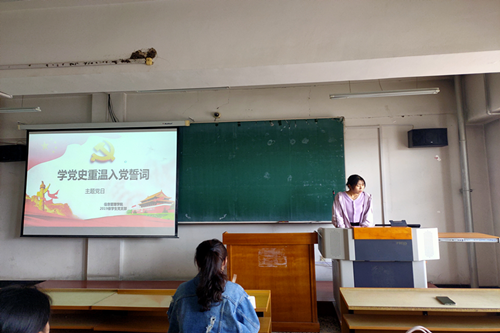 为深入贯彻落实习近平总书记系列重要讲话和文章精神,不忘初心,坚定理想信念,明确老员工党员的责任使命,做到知史爱党,知史爱国,yl8858永利集团于2021年6月17日,在汇文楼563教室开展以“学党史重温入党誓词”的为主题的党日活动。本次活动由学院2019级员工党支部书记王文静同学主持,学院团委副书记、2019级辅导员孙悦老师出席本次活动,yl8858永利集团2019级全体员工党员参与活动。