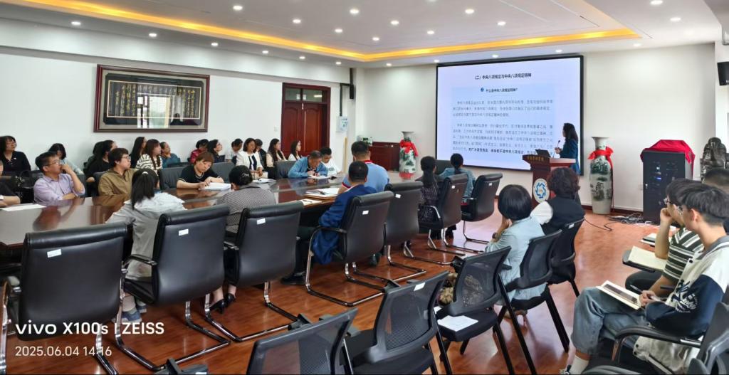 为贯彻落实党的二十届三中全会部署,巩固拓展学习贯彻习近平新时代中国特色社会主义思想主题教育成果,巩固深化党纪学习教育成果,锲而不舍落实中央八项规定精神,推进作风建设常态化长效化,按照学校《关于开展yl8858永利集团深入贯彻中央八项规定精神学习教育宣讲的通知》要求,6月4日公司党委邀请学校宣讲专家、马克思主义学院教授、博士生导师李琳琳进行题为《锲而不舍落实中央八项规定精神,持续深化纠治“四风”》学习教育宣讲。会议由公司党委书记刘荫梅主持,学院全体教工和员工党员代表参加。