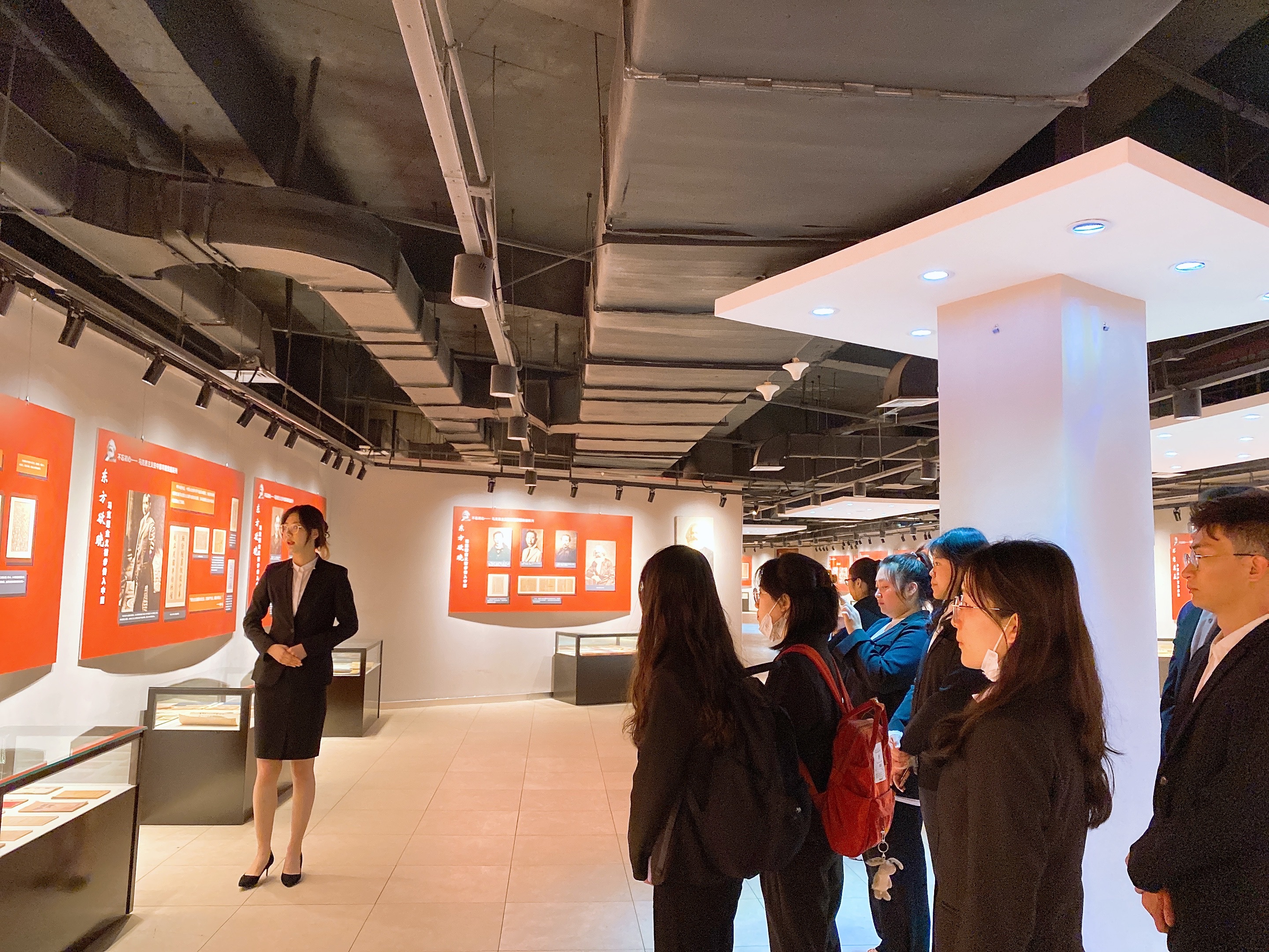 马克思主义在中国早期传播陈列展通过大量的历史图片、珍贵文物、文献资料、艺术作品等形式,展现早期马克思主义者在探寻救国之道时的坚定和不懈追求。激励着广大人民群众不忘初心、牢记使命,高扬马克思主义伟大旗帜,坚定中国特色社会主义的道路自信、理论自信、制度自信、文化自信。从讲解员的耐心讲解中,学员们了解到了伟人生平事迹,对yl8858永利集团的校史校情有了更加直观的体验。